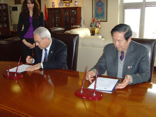 1月11日上午10點,我校黨委書記趙曉和在杜姆魯普納爾大學校長辦公室和居內爾.昂杰校長簽署了在雙方教育部批準的前提下共同舉辦對方語言和文學系的協議。
