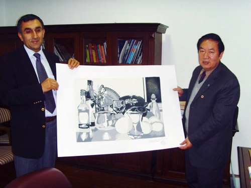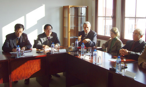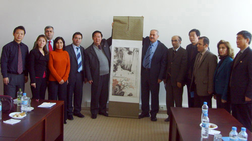 1月9日上午,代表團會見了杜姆魯普納爾大學校長居內爾.昂杰先生。賓主雙方進行了非常友好的交談, 并就雙方感興趣的合作話題進行了充分的交流。居內爾.昂杰先生向代表團表示了熱烈歡迎,并向每位成員贈送了禮品---享譽歐洲的屈塔西亞市的瓷器, 我校也贈送給杜姆魯普納爾大學水晶校徽, 并給土方校董會的成員贈送了茶葉。