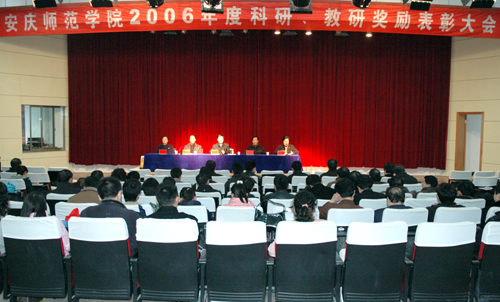 副院長時新中同志宣讀了《安慶師范學院2006年度科研教學成果獎獎勵決定》。與會校領導分別給“教學科研工作先進集體”教務處、科技處、辦公室、團委及各類成果獎先進個人頒獎。