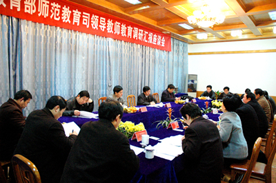 2006年12月3—4日,教育部師范教育司司長管培俊、師范教育司綜合處處長葛振江在省教育廳總督學(xué)李明陽,師范教育處處長儲常連的陪同下來我校進行教師教育發(fā)展情況調(diào)研。12月4日上午,我校在菱湖校區(qū)紅樓會議室召開教師教育發(fā)展情況匯報座談會,黨委書記趙曉和,副院長儲國定、時新中、王海燕,紀委書記殷紅等領(lǐng)導(dǎo)出席會議。黨辦、組織部、人事處、教務(wù)處、招生就業(yè)處、學(xué)生處、評建辦公室等單位負責(zé)同志參加了會議。