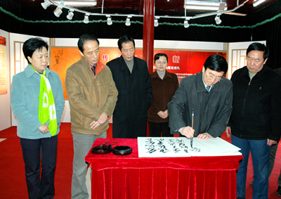 在我校調(diào)研期間,管培俊司長一行還參觀了我校龍山校區(qū)和菱湖校區(qū)國家級大學(xué)生文化素質(zhì)教育基地敬敷書院。在校史校情展館仔細聽取我校校史情況匯報后,管培俊司長興致勃勃的題寫了“發(fā)揚優(yōu)良傳統(tǒng),爭取更大光榮,辦好教師教育,開創(chuàng)美好未來”以作紀念。(宣傳部 計裕人,陳東攝影)