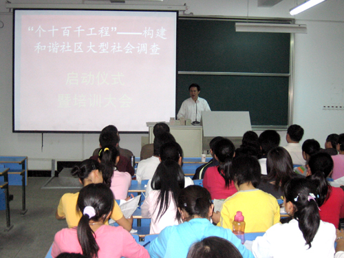 “個十百千”大型社會調查活動是由政法學院團總支與大學生鄧小平理論和“三個代表”重要思想研究會共同主辦的。“個十百千”,即以構建和諧社區為主題,以安慶市10個社區為調查范圍,組織百名大學生,訪問1000名社區居民,撰寫若干篇調查報告,爭取在較為深入地分析中小城市和諧社區建設狀況的基礎上提出建設性方案。
