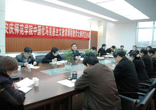 院長汪青松教授作重要講話,他指出,我校中國化馬克思主義課程建設工作進展順利,十二門課程的教學大綱的初稿已經完成。汪院長對中國化馬克思主義教育課程名稱的統一和各門課程教學大綱的體例、結構、內容、份量、文字等問題提出了明確要求。汪院長強調,各門課程在教學內容上要注意與各專業已開設的相關課程的對接,重在中國特色和創新上,在教學方法上要注意理論與實踐的對接,創新教學方法。