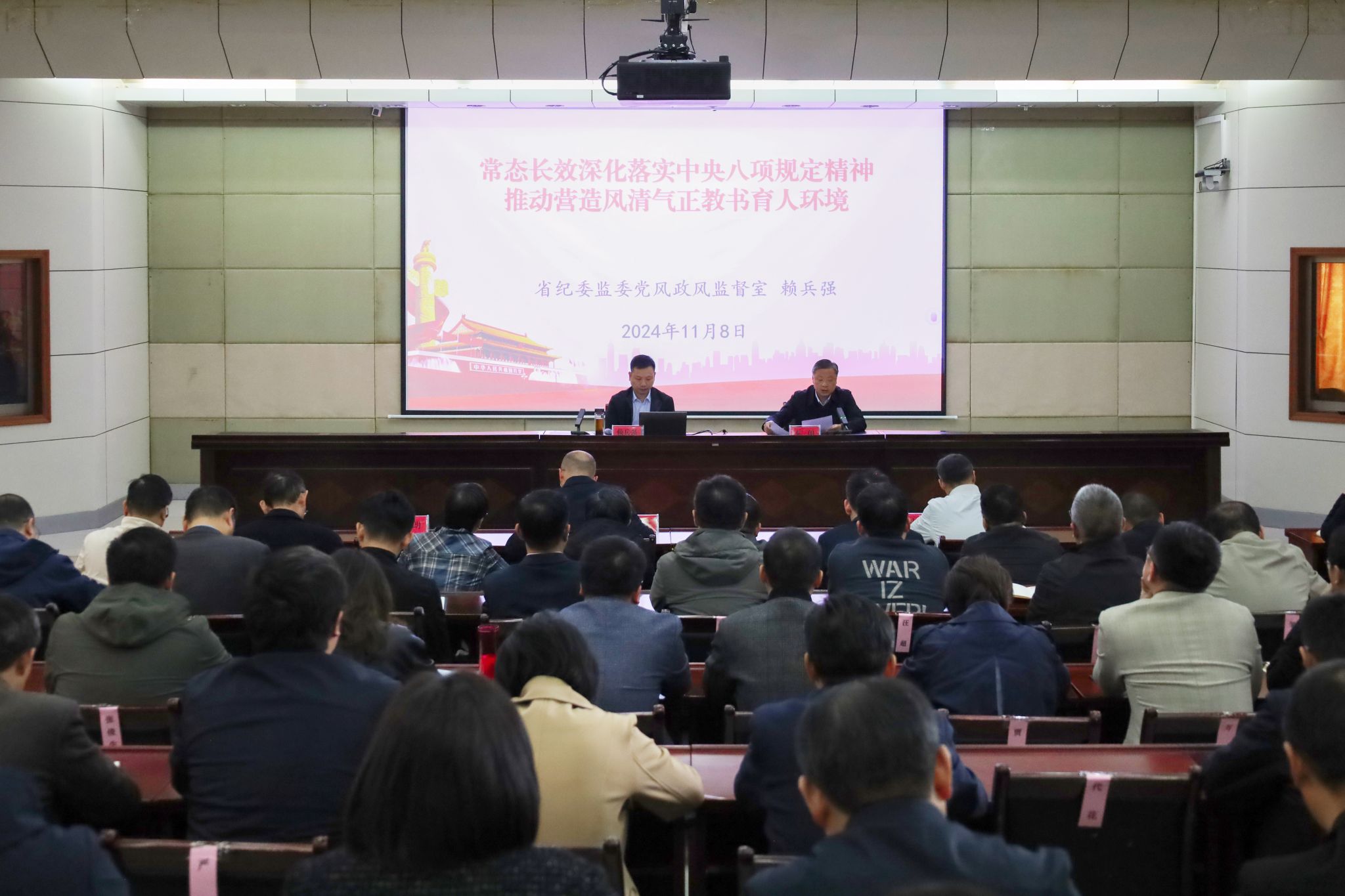 報告會上,賴兵強以“常態長效深化落實中央八項規定精神 推動營造風清氣正教書育人環境”為題,圍繞“深入學習貫徹習近平總書記關于作風建設的重要論述,查處違反中央八項規定精神問題有關說明,省屬高校系統貫徹落實中央八項規定精神的總體態勢及突出問題表現,查處享樂主義奢靡之風有關政策規定以及對省屬高校落實中央八項規定精神、糾治“四風”工作的幾點建議”等方面,對如何把握作風建設新形勢新任務新要求、貫徹落實中央八項規定精神進行了全面解讀和輔導。報告緊密聯系全省教育系統和高校實際,通報了省屬高校大量違紀違法典型案例,主題鮮明、內容豐富,對學校深入推進黨風廉政建設和紀律作風建設具有很強的針對性和指導性。