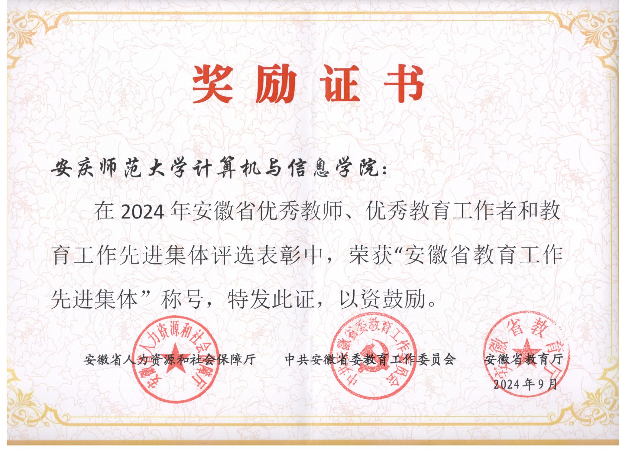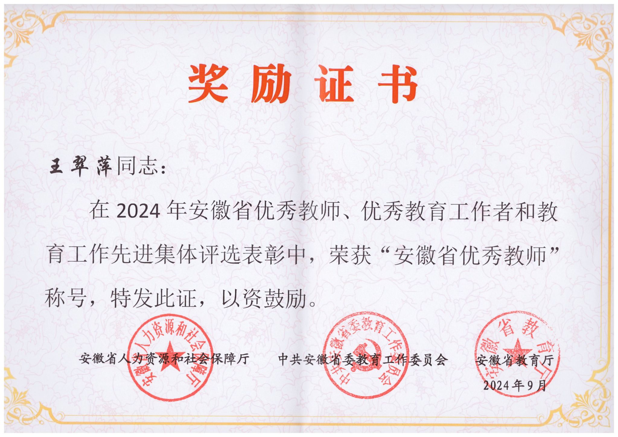 近日,安徽省人力資源和社會保障廳、中共安徽省委教育工委、安徽省教育廳印發《關于表彰2024年安徽省優秀教師、優秀教育工作者和教育工作先進集體的決定》,我校計算機與信息學院榮獲“安徽省教育工作先進集體”稱號,馬克思主義學院王翠萍教授榮獲“安徽省優秀教師”稱號。