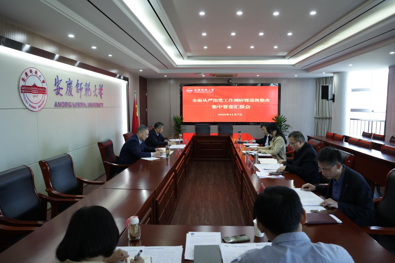 校紀委辦公室、巡視整改辦公室負責人參加調研督查,黨委組織部、黨委宣傳部、發展規劃處、人事處、教務處、科研處、學生處、國有資產管理處、資源環境學院、黃梅劇藝術學院等單位領導班子成員參加匯報會。(撰稿:吳春生 余戡 攝影:江偉 審核:陳正海 陳秀)