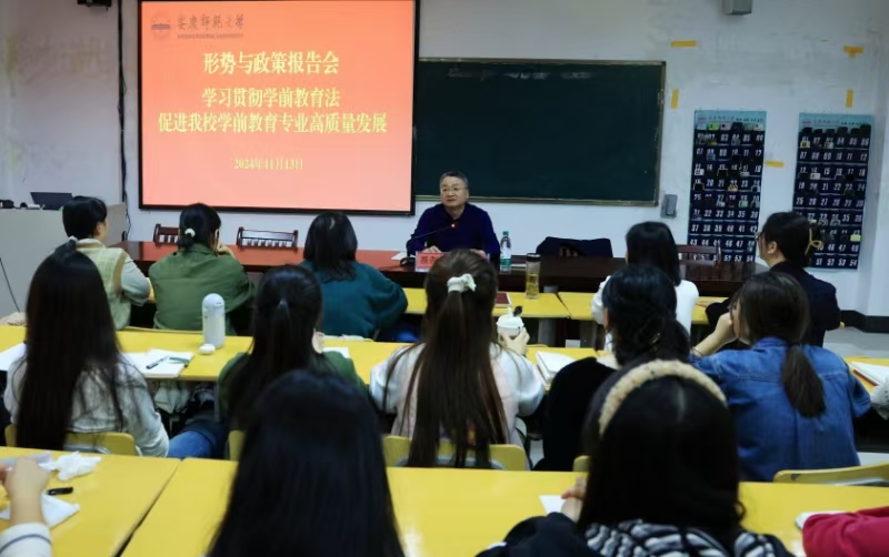 11月13日,校黨委書記李福華為教育科學(xué)學(xué)院師生作《學(xué)習(xí)貫徹學(xué)前教育法,促進(jìn)我校學(xué)前教育專業(yè)高質(zhì)量發(fā)展》的形勢與政策報(bào)告,深入學(xué)習(xí)貫徹黨的二十大和二十屆二中、三中全會(huì)精神,貫徹落實(shí)習(xí)近平總書記關(guān)于教育的重要論述和全國教育大會(huì)精神,學(xué)習(xí)宣傳學(xué)前教育法,推動(dòng)學(xué)前教育專業(yè)認(rèn)證專家反饋問題整改工作。