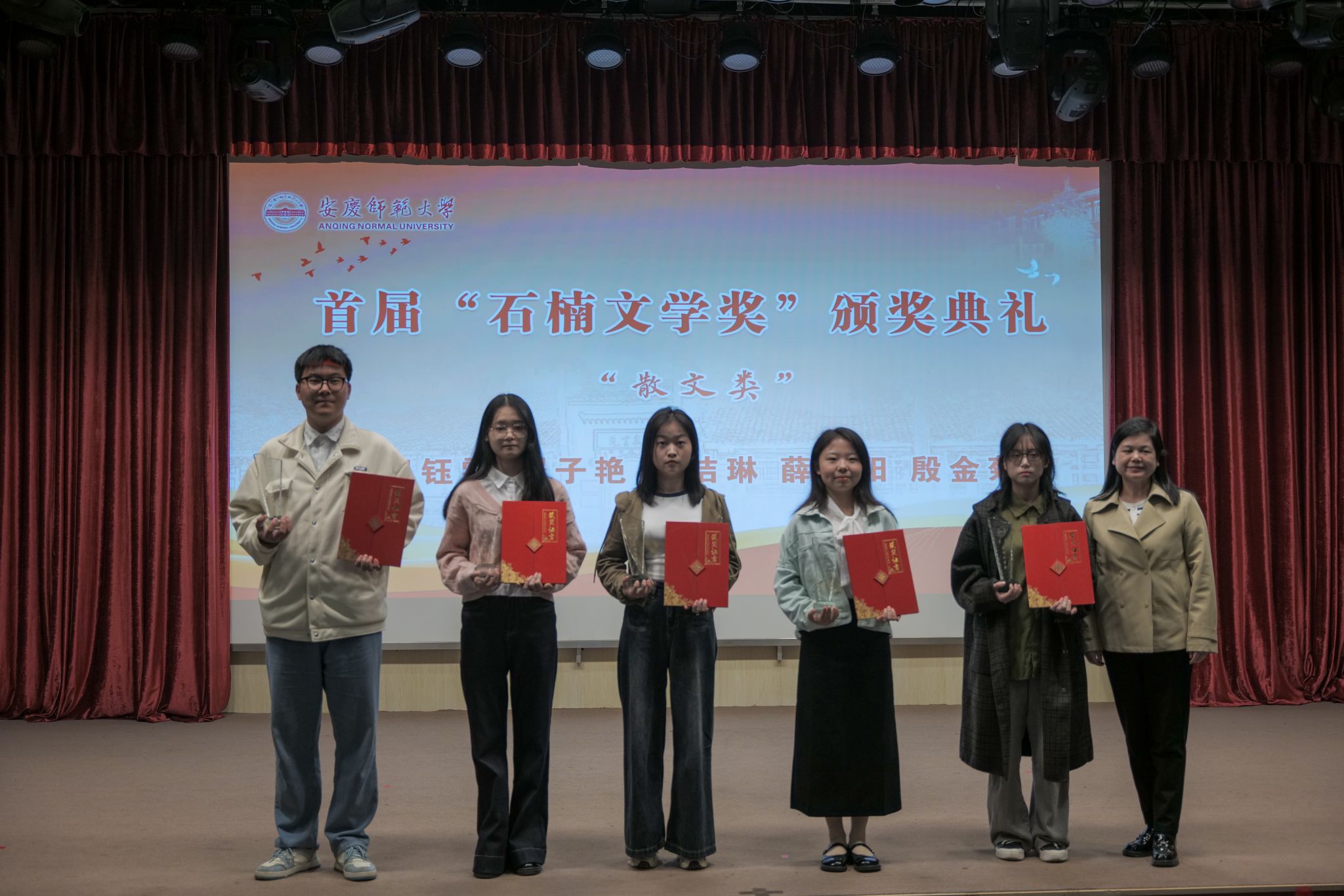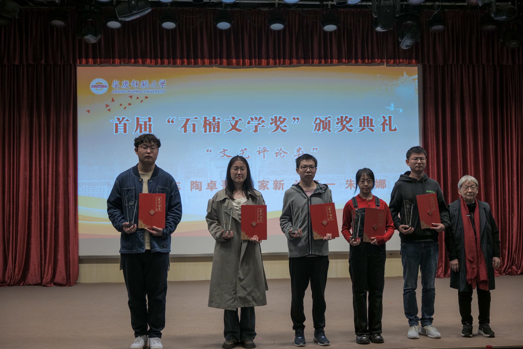 11月16日,學校在菱湖校區圖書館報告廳舉行首屆“石楠文學獎”頒獎典禮。校黨委常委、副校長劉友忠出席活動并致辭。文學獎發起人、著名作家石楠先生,安徽曙光化工集團黨委副書記、工會主席楊孝兵,泰邦集團董事長張志華等捐贈人,特邀嘉賓、評委代表、《詩歌月刊》主編何冰凌,安徽省作協副主席江飛,學生處、檔案館、校友總會、人文學院負責人與首屆文學獎獲獎學生、人文學院文典班學生等參加頒獎典禮。