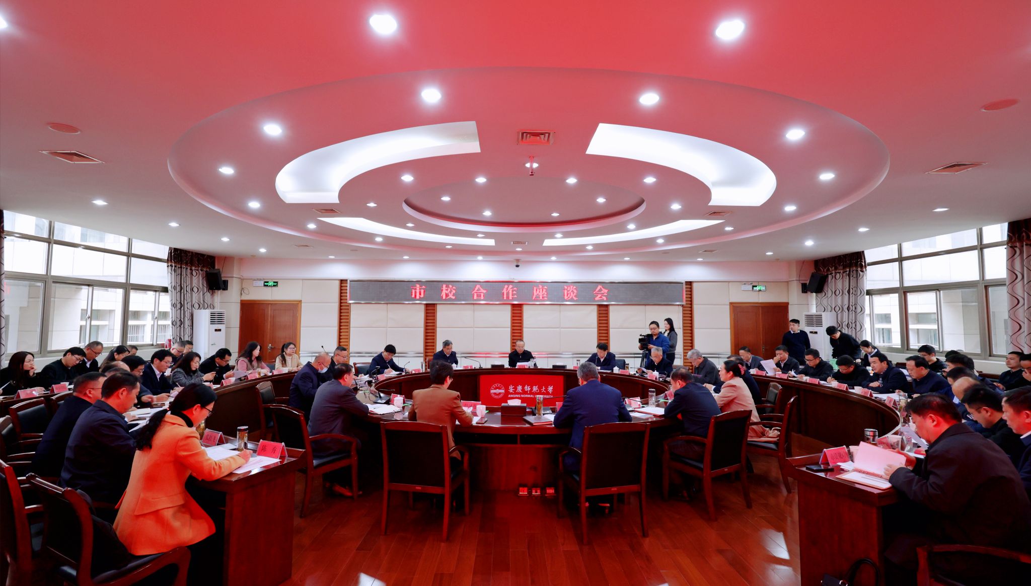 張祥安指出,安慶市與安慶師大開展新一輪市校合作以來,在雙方的共同努力下,打造了一批特色鮮明的科創(chuàng)平臺,攻關(guān)了一批亟待解決的產(chǎn)業(yè)難題,引育了一批寶貴的創(chuàng)新人才,合作態(tài)勢良好、成效初顯。當(dāng)前,安慶正處于蓄勢而發(fā)、大有可為的上升期、關(guān)鍵期。習(xí)近平總書記親臨安徽特別是安慶考察,讓我們倍感親切、倍受鼓舞、倍添干勁。希望安慶師大進一步發(fā)揮自身優(yōu)勢,在科技創(chuàng)新等領(lǐng)域給予安慶更多的支持,助推安慶高質(zhì)量發(fā)展。張祥安強調(diào),市校雙方要在做強產(chǎn)業(yè)上凝聚更大合力,希望師大發(fā)揮學(xué)科優(yōu)勢,深化校企合作、產(chǎn)教融合,選派相關(guān)專業(yè)的高層次人才到安慶各開發(fā)園區(qū)、重點企業(yè)掛任科技副總,推動園區(qū)、企業(yè)與高校智力資源的有效對接,幫助企業(yè)開展技術(shù)攻關(guān)、產(chǎn)品研發(fā)、項目孵化等,提升企業(yè)核心競爭力和產(chǎn)業(yè)鏈韌性。要在科技賦能上凝聚更大合力,希望師大在科研合作、平臺建設(shè)等方面與安慶市本級、各縣(市、區(qū))開展深度合作,在前期合作良好的基礎(chǔ)上,再協(xié)同打造一批高水平的科研基地、成果轉(zhuǎn)化基地。要在人才培養(yǎng)上凝聚更大合力,希望師大將安慶作為引導(dǎo)畢業(yè)生就業(yè)的重點區(qū)域,推薦更多學(xué)子在安慶就業(yè)創(chuàng)業(yè),實現(xiàn)城市與人才的相互成就。要在文化傳承上凝聚更大合力,希望師大繼續(xù)深入研究闡釋“六尺巷”“黃梅戲”等具有安慶辨識度的文化符號,推動優(yōu)秀傳統(tǒng)文化創(chuàng)造性轉(zhuǎn)化、創(chuàng)新性發(fā)展。要在密切合作上凝聚更大合力,建立常態(tài)化干部交流掛職機制,把高校人才納入地方人才“大盤子”統(tǒng)籌考慮,將地方人才放到高校培養(yǎng)提升,積極打造高校與地方產(chǎn)學(xué)研合作、人才共引共建共享的深度融合平臺。