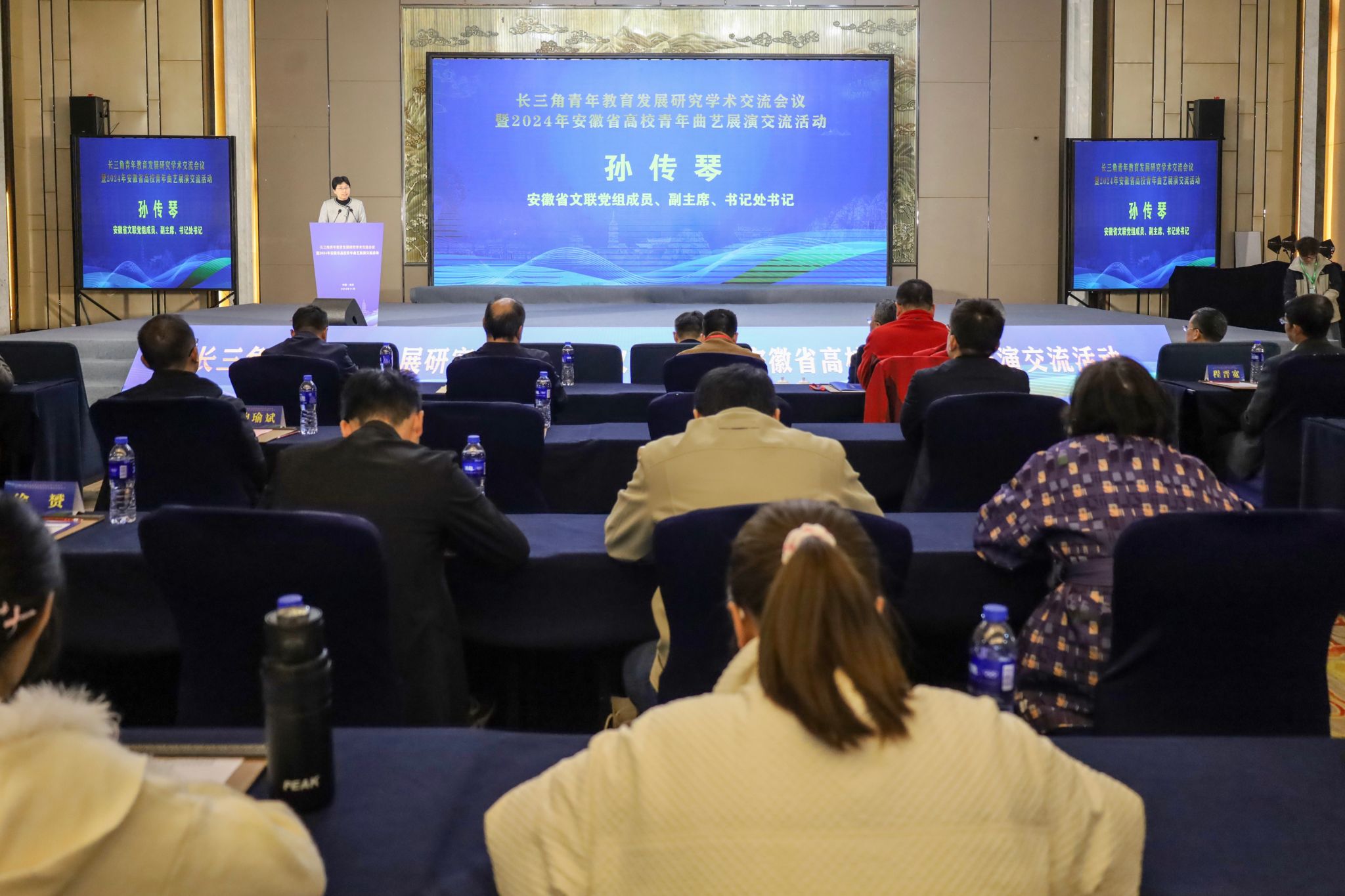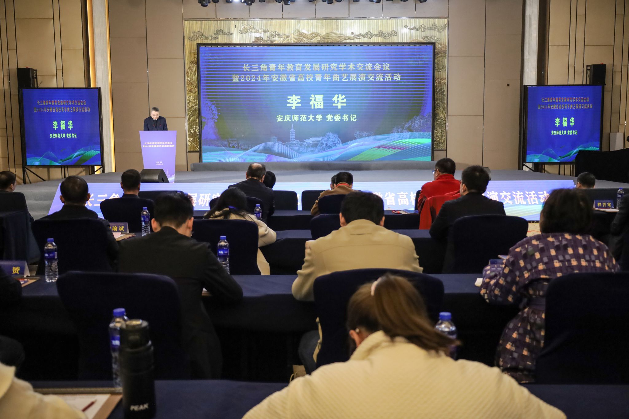 11月22日至23日,由團安徽省委、安徽省文聯、安徽省學聯和安慶師范大學聯合舉辦的長三角青年教育發展研究學術交流會議暨2024年安徽省高校曲藝展演活動在安慶市開幕。團安徽省委副書記、安徽省青聯主席李波,安徽省文聯黨組成員、副主席、書記處書記孫傳琴,校黨委書記李福華、校長彭鳳蓮、校黨委副書記崔明,安慶市委常委、副市長呂棟出席開幕式。長三角地區有關省級團委學校部、有關高校團委、美育教學管理機構、研究機構負責同志,中國社會科學院、中國青少年研究中心、中國藝術研究院等國字號研究單位權威專家,長三角地區30余所高校、科研院所近300名學者、青年師生參加開幕式。