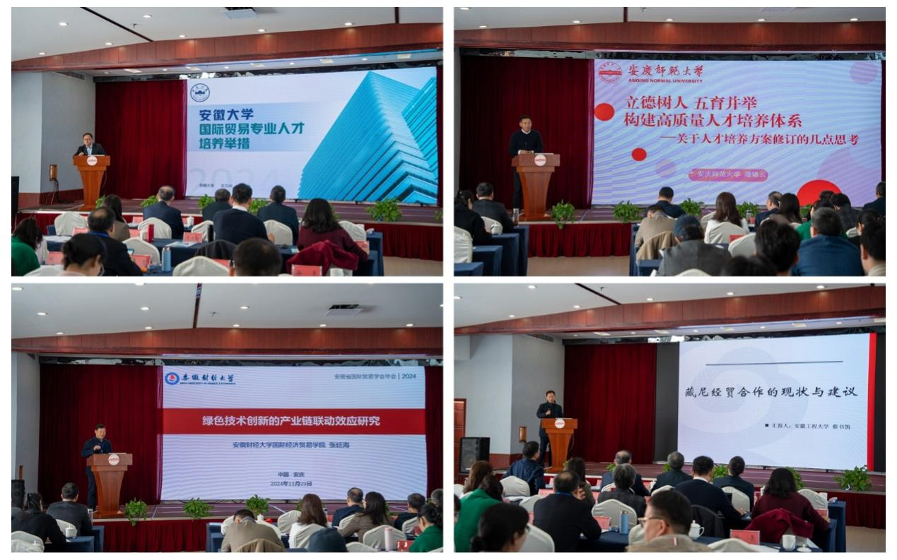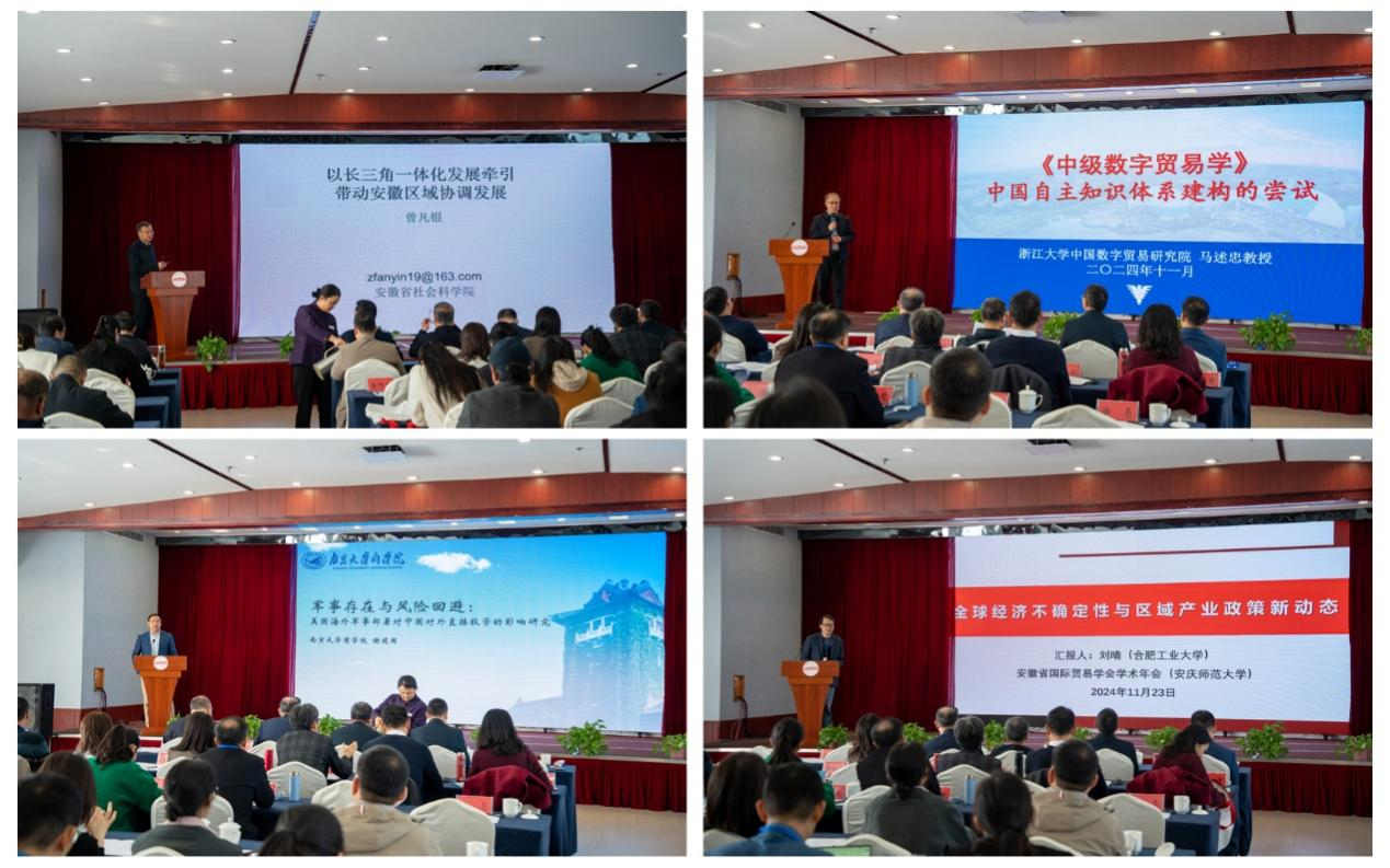 曾凡銀,浙江大學求是特聘教授、教育部長江學者特聘教授馬述忠教授,南京大學謝建國教授,合肥工業大學劉晴教授做了主旨報告。安徽大學王三興教授、安慶師范大學潘錦云教授、安徽財經大學張廷海教授、安徽工程大學蔡書凱教授分別做了專題報告。