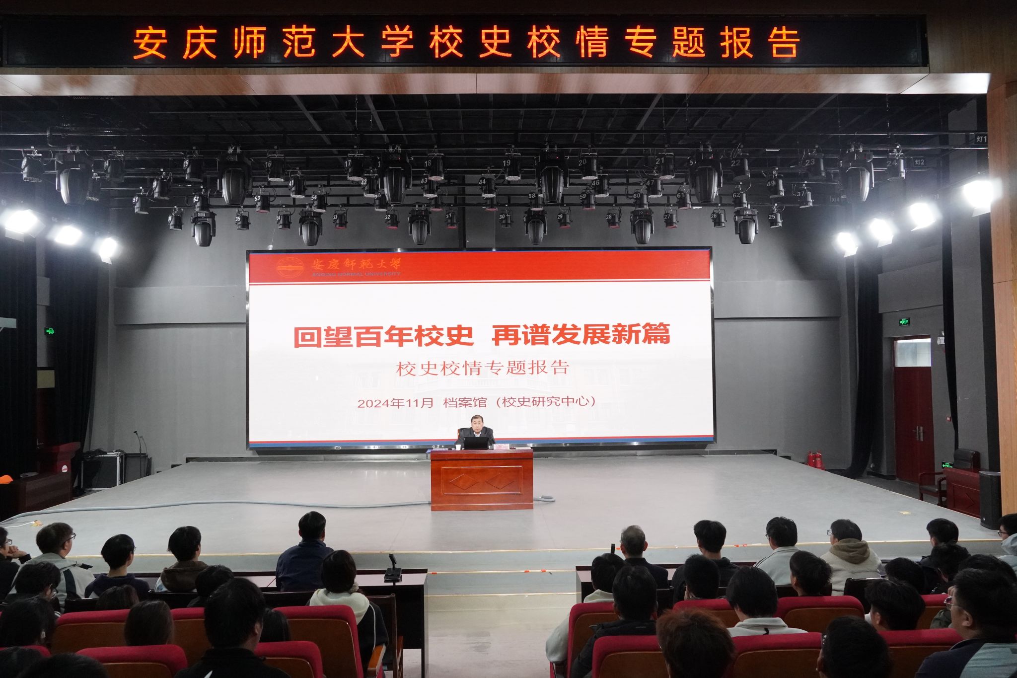 報告中,劉友忠以學校歷史發展脈絡為經,以校史上重點人、重點事、重點物為緯,詳細闡述了我校自敬敷書院以來127年的辦學歷程及文化積淀,展望了學校辦學前景。劉友忠指出,我校作為安徽省高等教育的起源地,歷經多次變革,但始終立足地方,面向全國,弘文勵教,保持著旺盛的生機和活力。他強調,同學們要傳承好紅色基因,傳播校史文化,努力成長為德智體美勞全面發展的社會主義建設者和接班人。要從校史中汲取明德敏行的養分,樹立遠大理想和社會擔當意識;要從校史中汲取敬敷勤學的養分,積累淵博學識和才能;要從校史中汲取求是創新的養分,培養歷史眼光和創新精神;要從校史中涵養校友情懷,增強愛校護校榮校意識。