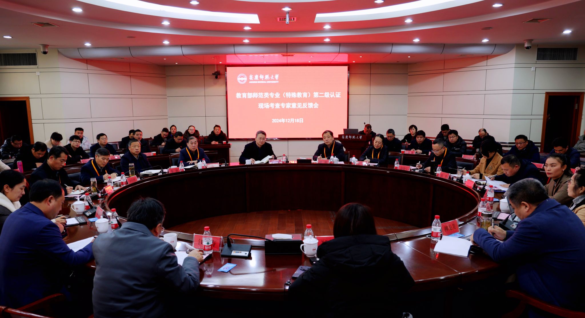 反饋會上,鄭燕林代表專家組作了總體情況反饋。專家組認為,安慶師范大學(xué)特殊教育專業(yè)教師有大愛,教育情懷深厚,熱愛特殊教育事業(yè),教學(xué)投入大,專業(yè)教師對師范生有著潛移默化的正向引導(dǎo);特殊教育專業(yè)有大格局,與多所特殊教育學(xué)校共建特殊教育發(fā)展聯(lián)盟,構(gòu)建了協(xié)同育人新生態(tài);特殊教育專業(yè)堅守育人初心,已經(jīng)成為安徽省特殊教育人才培養(yǎng)的重要基地;該專業(yè)師范生熱愛專業(yè)、熱愛學(xué)院、熱愛學(xué)校,絕大多數(shù)畢業(yè)生長期致力于特殊教育事業(yè),多數(shù)已成為領(lǐng)域的骨干力量。專家組在肯定特殊教育專業(yè)自評自建成效的同時,指出了在反向設(shè)計、正向施工、底線評價等方面存在的問題,并提出了進一步改進意見和建議。