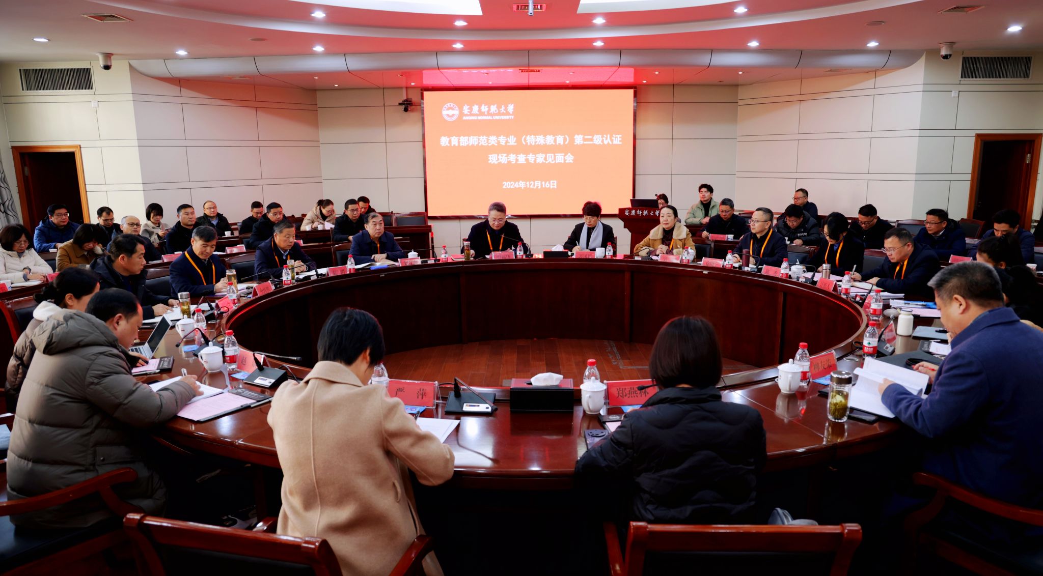 12月15日至12月18日,教育部師范類專業(yè)認證專家組對我校特殊教育專業(yè)進行第二級認證進校考查。專家組由東北師范大學(xué)鄭燕林教授擔(dān)任組長,成員為安徽藝術(shù)學(xué)院柳友榮教授、西南大學(xué)趙斌教授、嘉興大學(xué)顧群教授、亳州市特殊教育學(xué)校趙慶春正高級教師,阜陽師范大學(xué)教師張薇薇任專家組秘書。安徽省教育評估中心負責(zé)人現(xiàn)場指導(dǎo)。