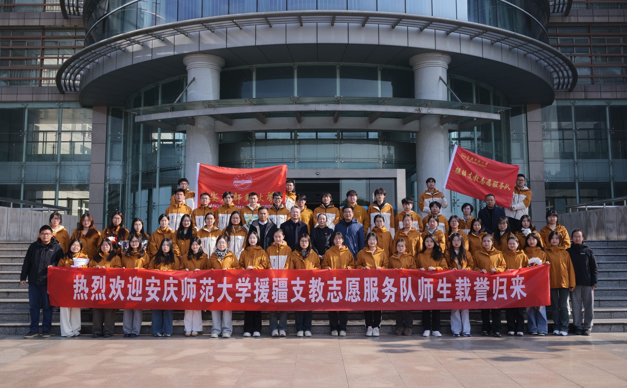 李福華向援疆支教志愿服務(wù)隊(duì)全體師生的平安返校表示歡迎,對大家為學(xué)校所爭取的榮譽(yù)表示衷心的感謝,并向同學(xué)們?nèi)〉玫呢S碩成果致以誠摯的祝賀。他強(qiáng)調(diào),要貫徹民族政策,維護(hù)民族團(tuán)結(jié),做民族團(tuán)結(jié)進(jìn)步的宣傳者、踐行者、維護(hù)者,推進(jìn)中華民族共同體建設(shè);要堅(jiān)守教育初心,厚植教育情懷,繼續(xù)保持對教育事業(yè)的熱情,將援疆支教經(jīng)驗(yàn)轉(zhuǎn)化為前進(jìn)的動力;要扎根基層沃土,潛心教書育人,到祖國最需要的地方去,用實(shí)際行動詮釋新時(shí)代青年的家國情懷與責(zé)任擔(dān)當(dāng)。