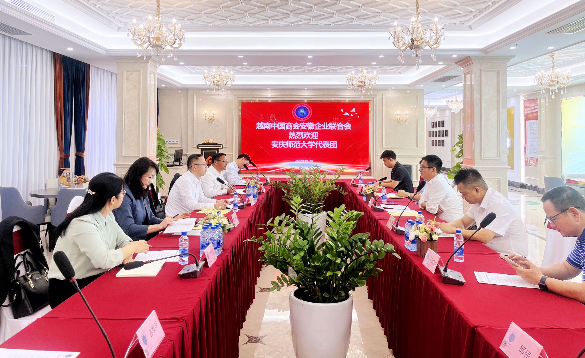 在越南中國商會安徽企業聯合會,會長何志平對徐曉寧一行到訪表示熱烈歡迎,并介紹了越南中國商會安徽企業聯合會發展概況和人才需求。徐曉寧指出,我校辦學歷史悠久,具有人才、資源、創新三方面優勢,畢業生專業能力過硬、綜合素質優良、實踐能力突出。此次訪問越南中國商會安徽企業聯合會,也是一次訪企拓崗走訪,歡迎商會組織會員單位組團到我校招聘畢業生。