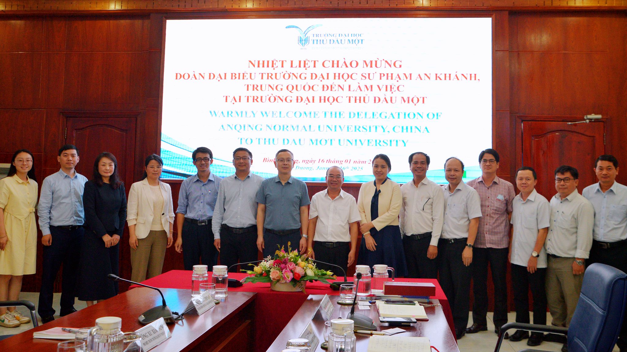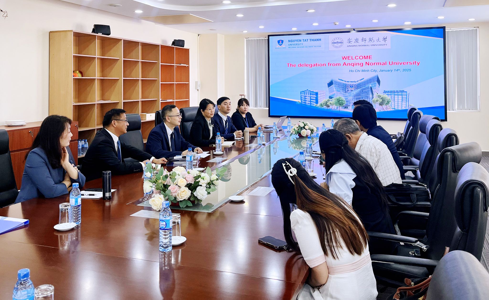 在土龍木大學,該校副校長吳鴻疊對我校到訪表示熱烈歡迎,簡要介紹了土龍木大學辦學歷史、基本現狀和國際交流情況。徐曉寧指出,雙方同為擁有師范底色的綜合性公辦高校,合作空間廣闊。徐曉寧強調,安慶師范大學作為長江流域高校,已成立長江文化研究院、黃梅戲文化研究院,學校愿意與越方在瀾湄合作機制框架下開展務實合作。雙方一致認為,在兩省剛剛簽訂《中華人民共和國安徽省與越南社會主義共和國平陽省建立友好省際關系意向書》的大背景下,要抓住戰略機遇、推進教育合作、促進兩省結好。