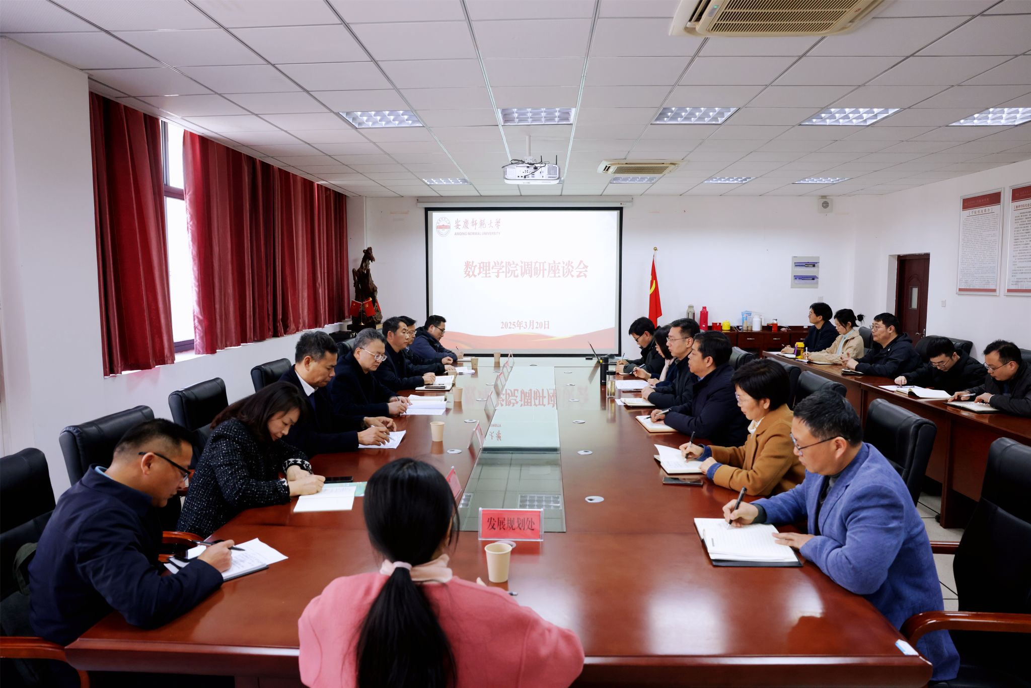 3月20日,校黨委書(shū)記李福華、校黨委常委張紅飛一行赴數(shù)理學(xué)院調(diào)研。校辦公室、發(fā)展規(guī)劃處、人事處、教務(wù)處、科研處、研究生院、國(guó)際交流與合作處等職能部門(mén)負(fù)責(zé)人及數(shù)理學(xué)院黨政班子成員、各科室負(fù)責(zé)人、黨支部書(shū)記、教研室主任、副高以上職稱教師代表參加座談。