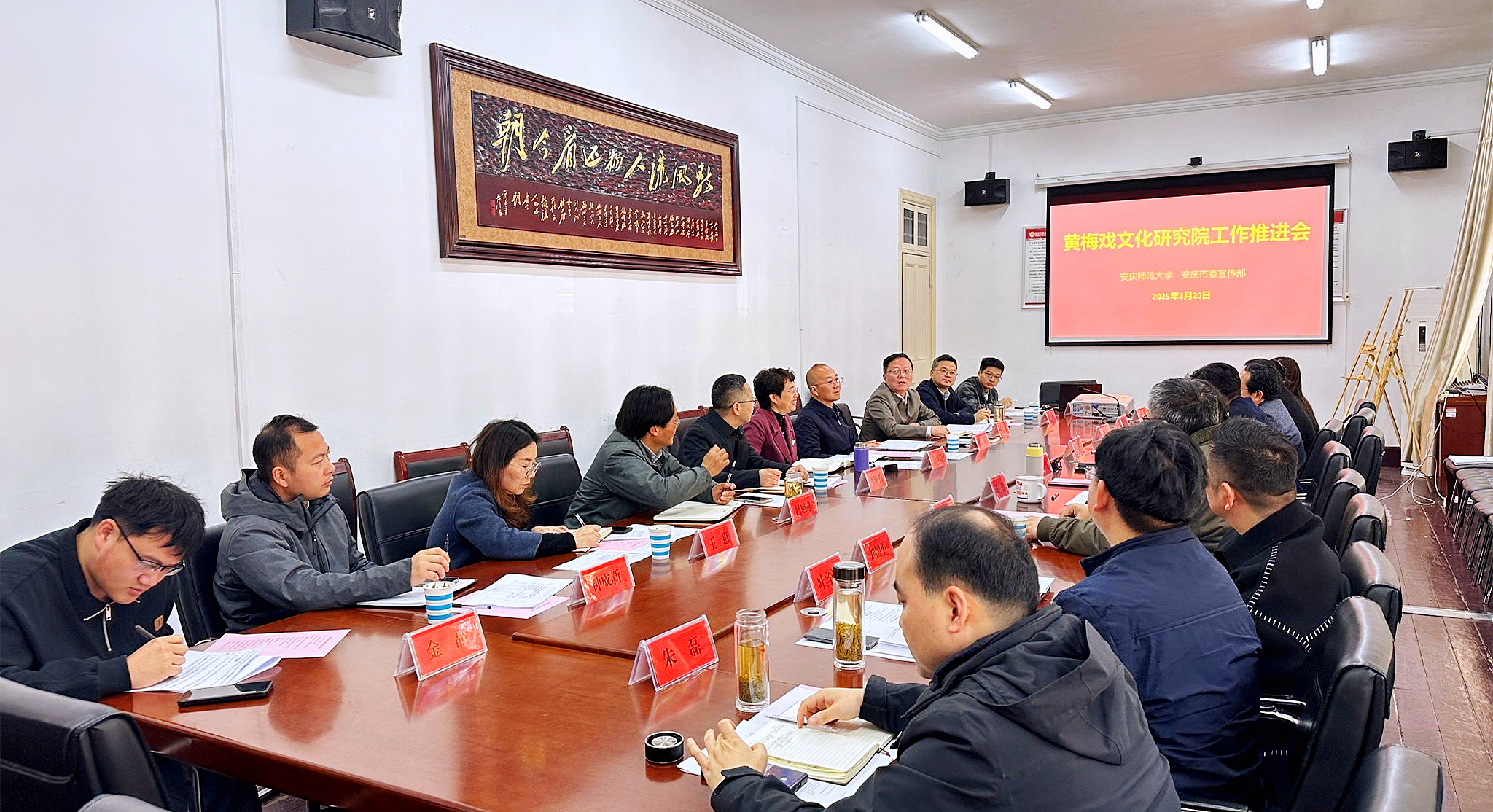 3月20日,學校召開黃梅戲文化研究院工作推進會。校長彭鳳蓮,校黨委常委、副校長肖新,校黨委常委、副校長、黃梅戲文化研究院院長徐曉寧,安慶市委宣傳部常務副部長賀彥明,黃梅戲文化研究院首席教授韓再芬等出席會議。會議由肖新主持。