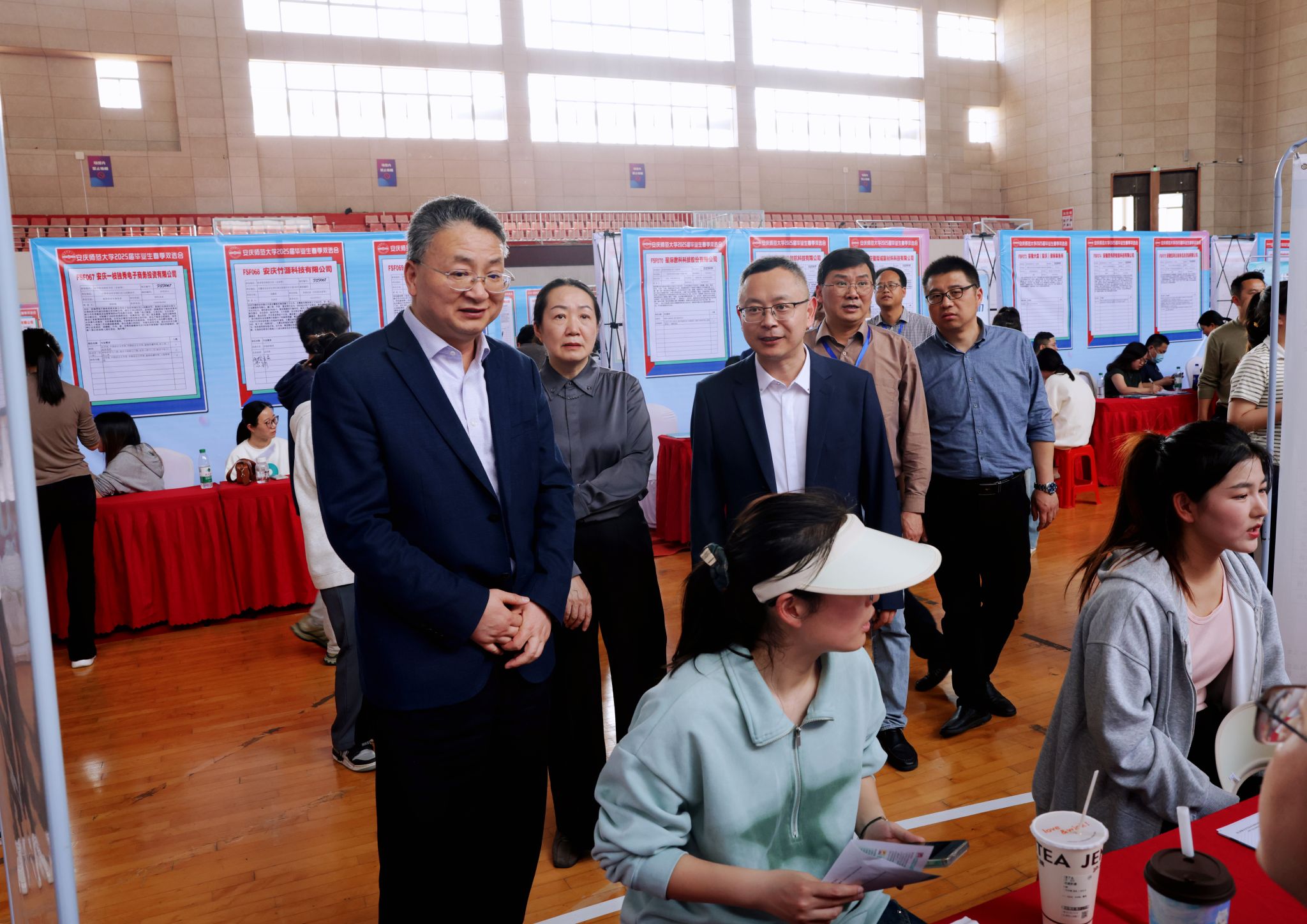 校黨委書記李福華,校黨委常委、副校長吳瓊、徐曉寧到雙選會現場進行指導調研,與用人單位招聘人員深入交流,了解企業人才需求情況,詢問畢業生就業意向與求職進程,并對畢業生進行就業指導。