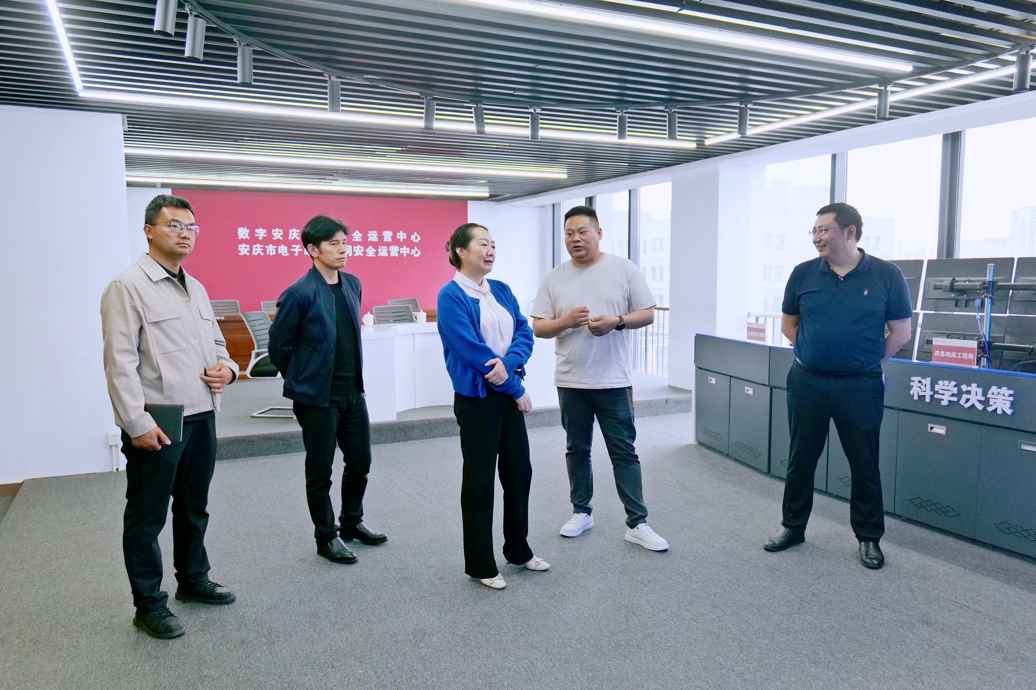 吳瓊一行先后參觀了數(shù)字安慶城市安全運營中心、安慶市電子政務(wù)外網(wǎng)安全運營中心,詳細了解數(shù)字安慶城市安全和電子政務(wù)網(wǎng)絡(luò)安全平臺的運營情況,并觀摩我校理工專業(yè)學(xué)院校企培訓(xùn)班的網(wǎng)絡(luò)安全培訓(xùn)課程。吳瓊高度評價相關(guān)企業(yè)為數(shù)字安慶城市安全和電子政務(wù)網(wǎng)絡(luò)安全提供全方位的保障,對產(chǎn)教融合提出新的期待,希望與相關(guān)企業(yè)在人才培養(yǎng)、就業(yè)基地建設(shè)、微專業(yè)建設(shè)等方面開展更深入的交流,為企業(yè)輸送更多符合崗位需求的畢業(yè)生。