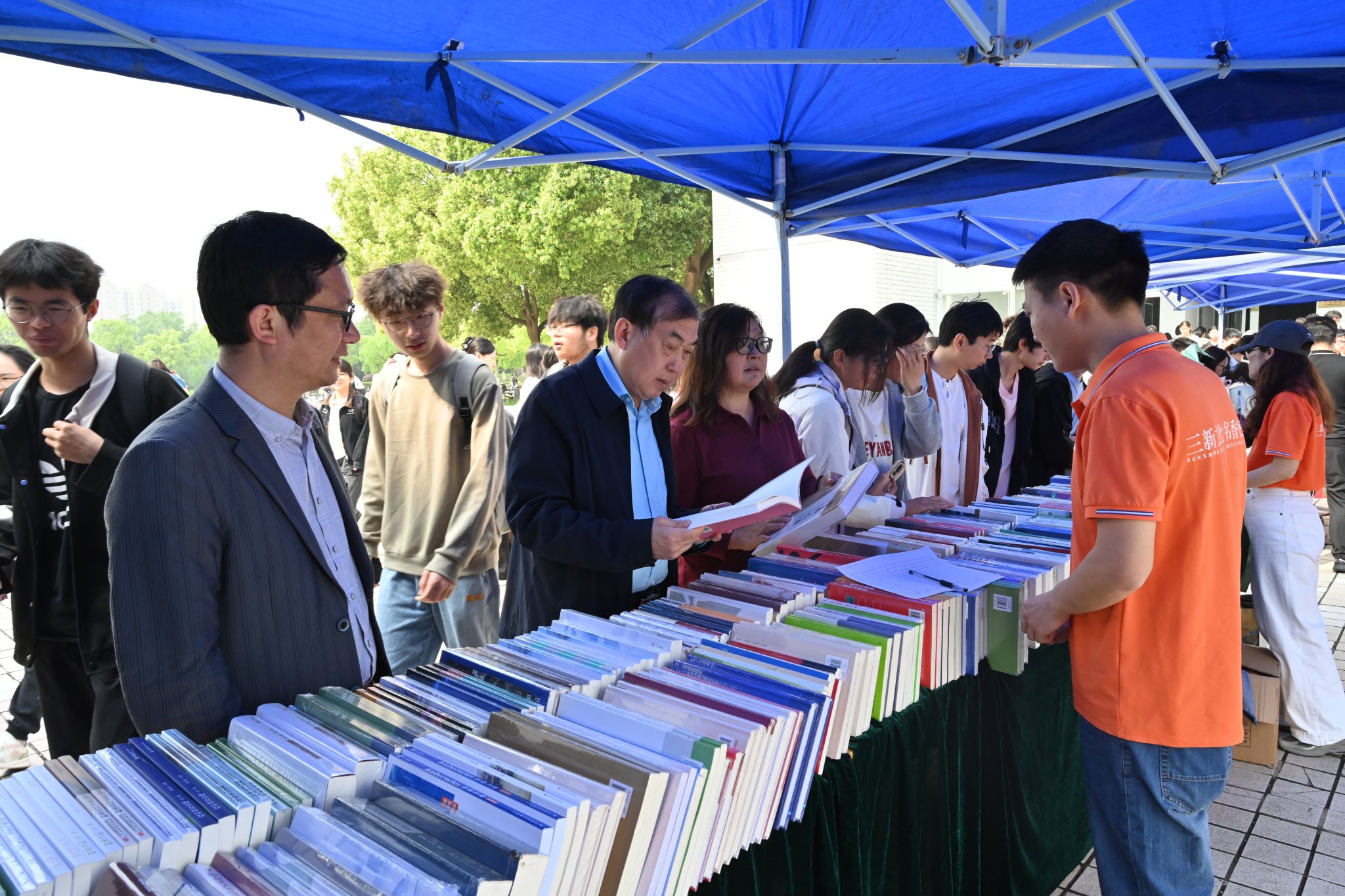 劉友忠仔細(xì)查看書目,不時駐足翻閱圖書,并和前來選書的師生親切交流。他指出,讀書是師生認(rèn)知世界、塑造人格、培育高尚情操和家國情懷的重要途徑,盡管隨著技術(shù)升級,書籍的呈現(xiàn)方式和閱讀方式發(fā)生了改變,但我們要牢記習(xí)近平總書記關(guān)于推動全民閱讀、建設(shè)書香社會的重要指示精神,多開展閱讀活動,讓書香浸潤校園、浸潤心靈。