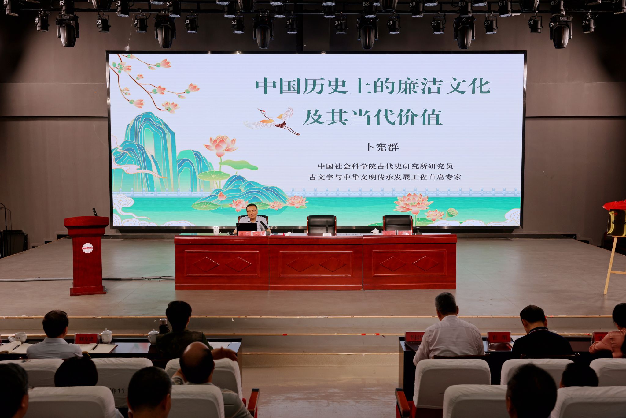 卜憲群闡釋了歷史上以廉為本、民惟邦本、賢者在位、德為才帥、居官無私、正身律己、家國同構等豐富的廉潔文化內容。他表示,重視從歷史廉潔文化中汲取智慧,對貫徹習近平總書記關于新時代廉潔文化建設的重要論述精神、推動新時代廉潔文化建設意義重大。整場報告深入淺出、旁征博引,讓在場的黨員干部對廉潔文化的歷史淵源與時代價值有了全新認知。