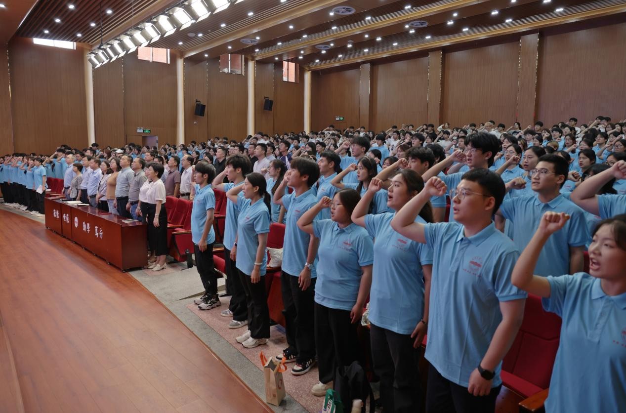 啟動儀式上,崔明與相關部門負責人共同為學校2025年大學生暑期“三下鄉”社會實踐活動暨2026年“挑戰杯”競賽啟幕,向重點實踐團隊授旗。指導教師和學生代表分別做了發言,全體志愿者進行了集體宣誓。