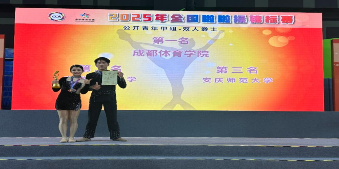 5月21日,2025年全國啦啦操錦標(biāo)賽在安徽省合肥市新站高新區(qū)少荃體育中心盛大開幕。我校啦啦操隊在教練員潮芳、王云輝、陳強、劉祥的悉心指導(dǎo)下,在參加的六個項目中勇奪3金1銀1銅和一個第四名,分別獲得高水平組集體街舞自選第一,集體花球規(guī)定第一,集體爵士自選第二,雙人爵士第三;普通院校組集體街舞自選第一和俱樂部組雙人爵士第四的優(yōu)異成績。