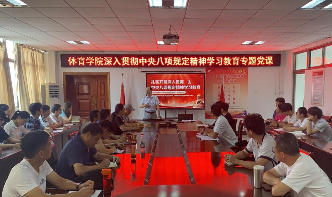 6月25日,體育學院黨委書記王瑋在體育館三樓會議室,以“扎實開展深入貫徹中央八項規定精神學習教育”為主題講授專題黨課。體育學院田徑、球類兩個教師黨支部和體育教育專業學生黨支部全體黨員、入黨積極分子聆聽本次專題黨課。