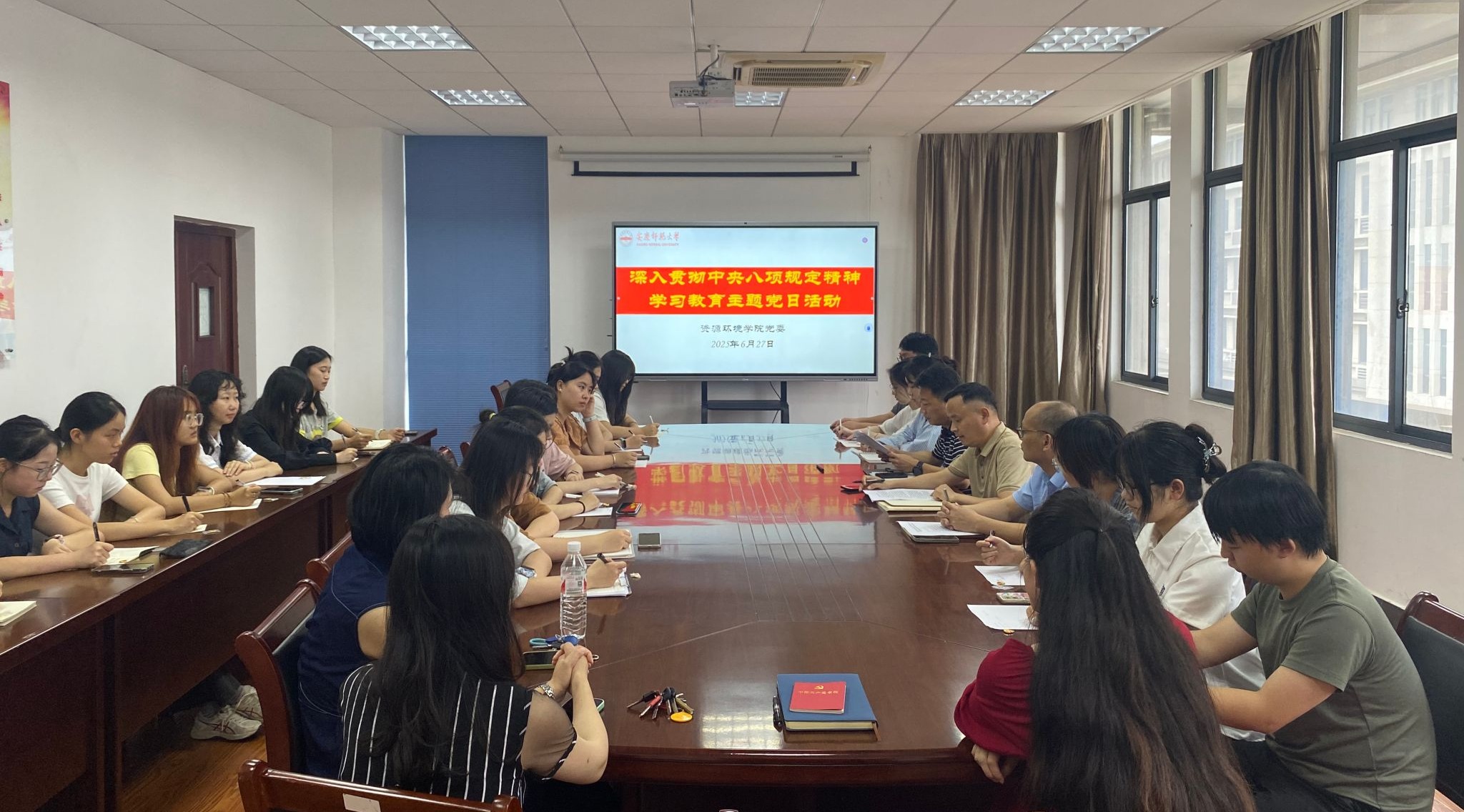 6月27日,資源環境學院開展深入貫徹中央八項規定精神學習教育,開展慶“七一”主題黨日活動。資源環境學院黨委書記夏斐、院長汪德進、黨委副書記黃建平和學生黨支部書記、新發展黨員參加活動。