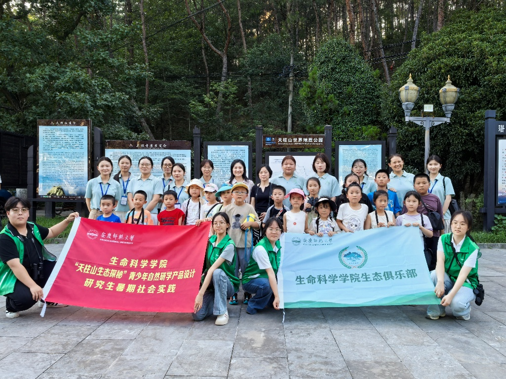 近日,生命科學學院師生走進潛山市天柱山研學基地,開展了“天柱山生態探秘”自然研學研究生暑期社會實踐活動。活動結合天柱山世界地質公園及皖河濕地的自然資源,設計并實施了一系列科學探究與藝術創作相結合的課程,旨在提升青少年的生態文明素養,推動生態資源向教育載體轉化。