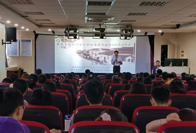 5月14日下午,教育部課程中心高中化學深度學習核心專家夏建華老師應邀來我?;瘜W化工學院講學,在龍山校區F樓411報告廳作了題為“素養導向的中學化學深度學習教學設計與實踐”的學術報告。報告會由夏宏宇教授主持,化學學科教研室全體教師、學科教學碩士研究生及2018級師范類本科生共120余人參加聆聽了此次報告。