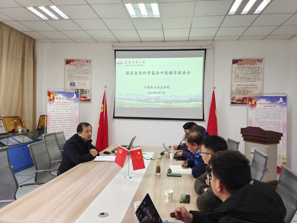 2021年3月7日下午,應計算機與信息學院、安徽省智能感知與計算高校重點實驗室邀請,安徽師范大學計算機與信息學院羅永龍教授在我校稼先樓南108會議室做國家自然科學基金申報輔導。計算機與信息學院部分教授、博士參加報告會,報告會由該院院長王一賓教授主持。