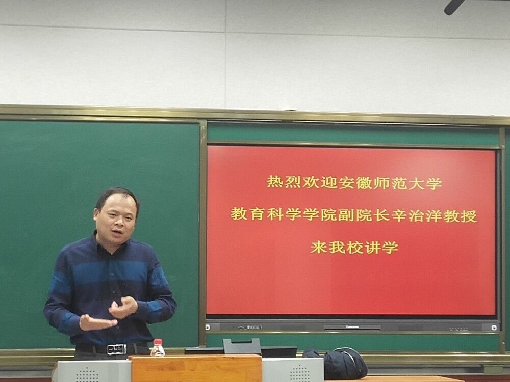 11月7日下午,應教師教育學院邀請,安徽師范大學教育科學學院副院長辛治洋教授在J511教室作題為“例談教育科研的問題與方法”學術講座。學院全體研究生及部分教師聆聽了講座,此次報告由教師教育學院副院長汪洋主持。