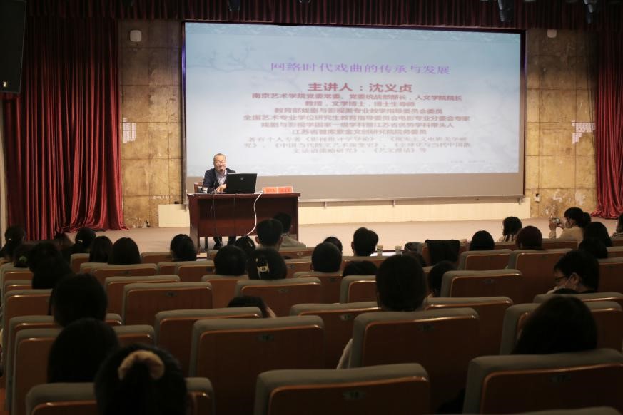 10月22日上午,應(yīng)黃梅劇藝術(shù)學(xué)院邀請(qǐng),南京藝術(shù)學(xué)院沈義貞教授在菱湖校區(qū)圖書(shū)館一樓報(bào)告廳作了一場(chǎng)題為“網(wǎng)絡(luò)時(shí)代戲曲的傳承和發(fā)展”學(xué)術(shù)講座。黃梅劇藝術(shù)學(xué)院全體本科生,藝術(shù)(戲曲)專(zhuān)業(yè)研究生和部分教師加了講座。講座由黃梅劇藝術(shù)學(xué)院儲(chǔ)著炎副院長(zhǎng)主持。