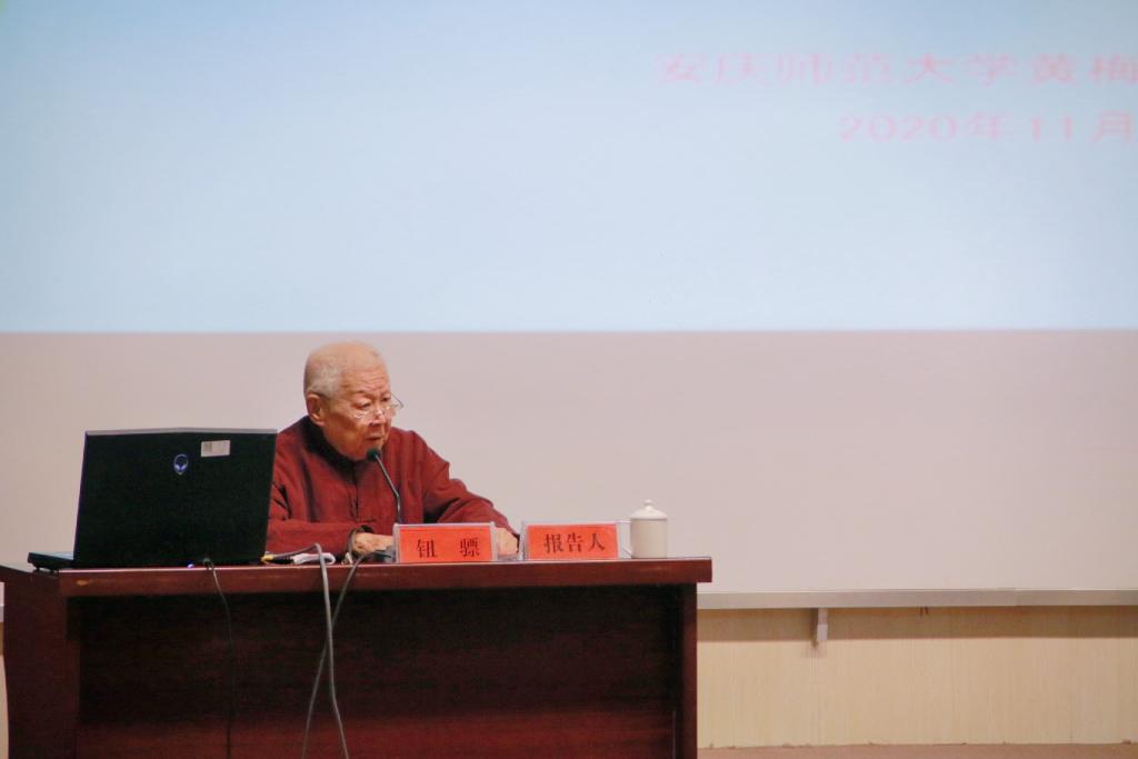 11月12日上午,鈕驃教授圍繞習近平總書記給中國戲曲學院的回信精神,為該院師生作“戲曲的教育與傳承”專題講座。講座伊始,鈕驃教授深情地說,寫京劇史離不開安慶,這次安慶之行,他是來尋根的。鈕教授認為,總書記給中國戲曲學院師生的回信,是對以中國戲曲學院為代表的中國戲曲教育與戲曲人才培養的重要指示,我們一定要牢記總書記的重托和期望,緊緊圍繞立德樹人這一根本任務,堅守從藝初心,堅持守正創新,堅定文化自信。在講座中,鈕教授基于自身豐富的求學從藝經歷與豐厚的教育教學實踐,并從諸多前輩大師如梅蘭芳、程長庚、楊小樓、葉春善等人的舞臺實踐舉例,深入淺出地向大家解讀了“守正創新”對于繁榮發展戲曲事業的重要性,并一再勉勵我校師生一定要大力弘揚程長庚精神,把我們的安徽戲曲特別是黃梅戲藝術傳承發展好;作為地處戲曲之鄉的安慶師范大學也有責任有義務把黃梅戲這一戲曲瑰寶傳承發展好。