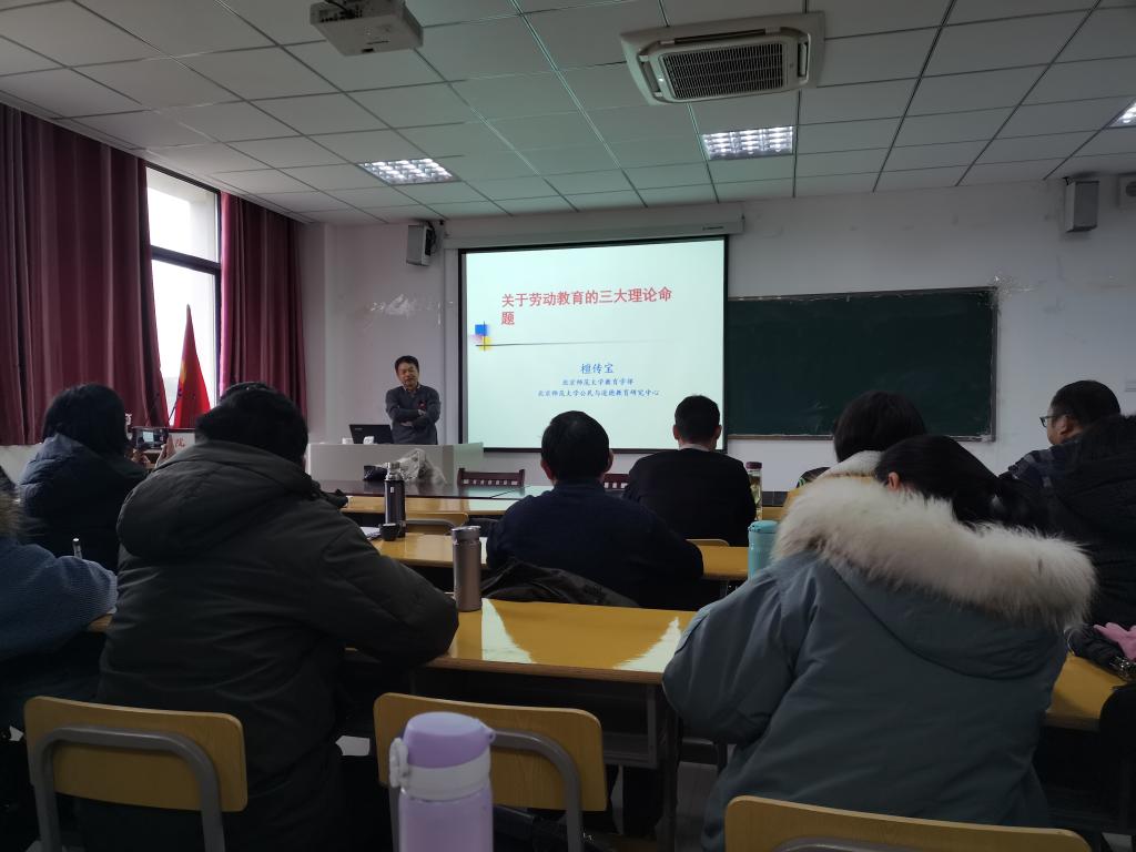 12月29日下午,應教師教育學院邀請,北京師范大學教育學部教授、博士生導師,公民與道德教育研究中心主任檀傳寶老師,在J305教室作了一場題為“關于勞動教育的三大理論命題”的學術報告。教師教育學院部分老師及研究生聆聽了此報告。此次報告由教師教育學院黨委書記曹長德教授主持。