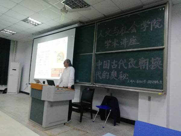 5月8日晚上,應人文與社會學院邀請,南京大學歷史學院副院長、六朝研究所所長、六朝博物館館長、央視《百家講壇》著名主講人胡阿祥教授在文淵樓207教室作了一場題為“中國古代改朝換代的奧秘”的學術講座。學院200余名師生聆聽了講座,學院副院長金仁義教授主持講座。