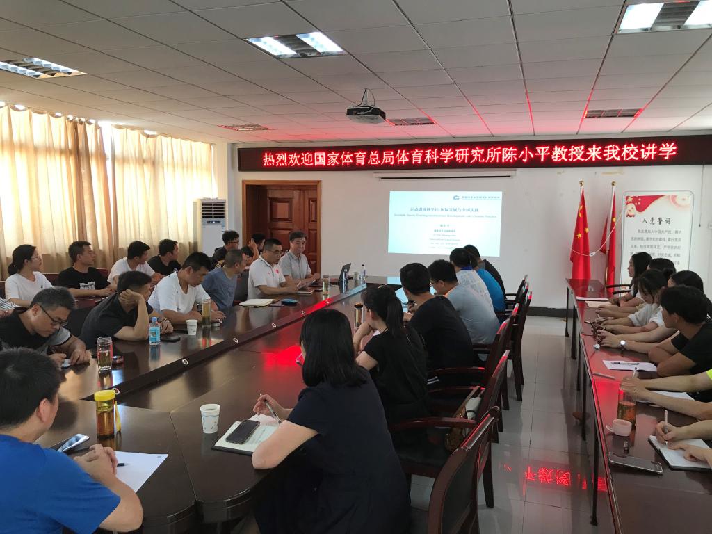6月13日下午,應(yīng)體育學(xué)院邀請,國家體育總局體育科學(xué)研究所特聘研究員,中國體育科學(xué)學(xué)會(huì)學(xué)術(shù)委員會(huì)副主任委員,中國體育科學(xué)學(xué)會(huì)體能分會(huì)副主任委員,中國賽艇協(xié)會(huì)副主席,國家體育總局奧運(yùn)備戰(zhàn)辦專家陳小平教授,在體育館會(huì)議室作了一場題為《運(yùn)動(dòng)訓(xùn)練科學(xué)化——國際發(fā)展與中國實(shí)踐》 的學(xué)術(shù)報(bào)告。體育學(xué)院的全體碩士生導(dǎo)師、2019級體育專業(yè)碩士和部分教師聆聽了本次報(bào)告,報(bào)告會(huì)由該院院長章翔教授主持。