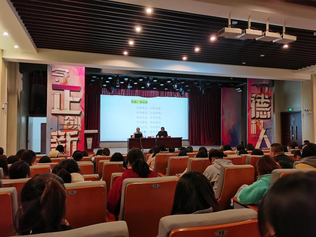 3月16日下午,應人文學院邀請,南京師范大學教授、博士生導師鐘振振先生在我校菱湖校區(qū)圖書館學術(shù)報告廳做“中國古代山水詩詞鑒賞”的學術(shù)講座。講座由人文學院副院長汪孔豐教授主持,中文、歷史兩個專業(yè)的近200名本科生以及研究生聆聽了報告。