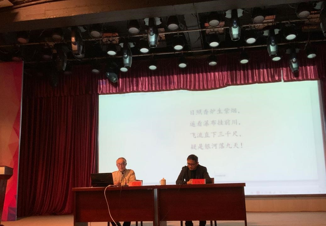 講座過程中,鐘先生指出中國山水,有別于國外山水,自成特色,是自然景觀與人文內(nèi)涵的珠聯(lián)璧合。對此,鐘先生先后舉了《觀滄海》《望岳》《望廬山瀑布》《望天門山》《望洞庭湖贈張丞相》《使至塞上》等詩歌名篇,生動細致地展示了如何理解詩作中的山水。他還提醒我們,文學不僅要講真、善,更要有美。在現(xiàn)場互動環(huán)節(jié),鐘先生還細致地解答了同學們提出的問題。