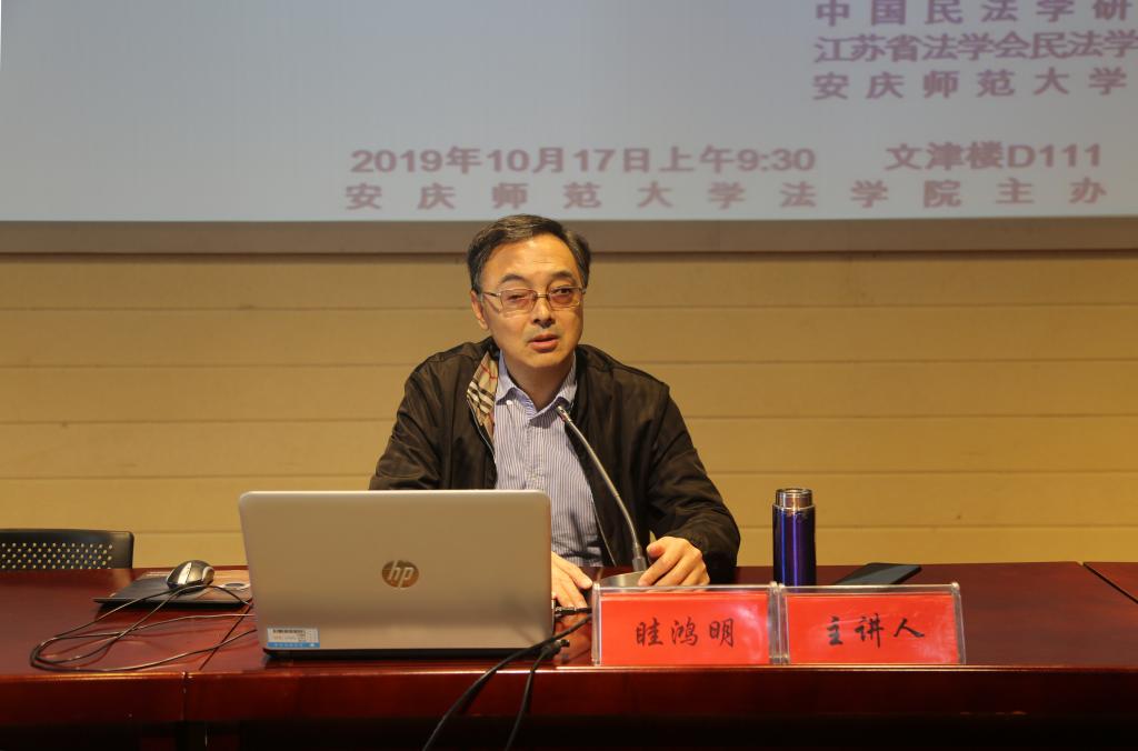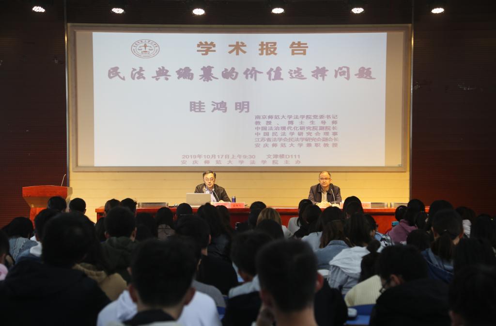 10月17日上午在龍山校區文津樓D111報告廳,南京師范大學法學院黨委書記、博士生導師眭鴻明教授來我校作“民法典編纂的價值選擇問題”學術報告。報告會由法學院院長焦少林教授主持,法學院2019級法律碩士研究生及法學專業2018級、2017級共170余人聆聽了報告。