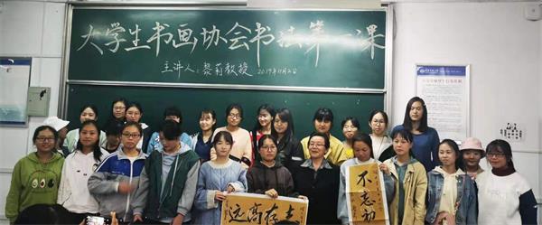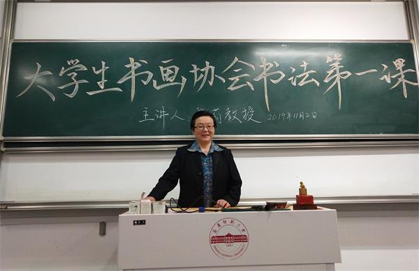 11月2日晚龍山校區教學樓D樓305室,圖書館研究館員大學生書畫協會輔導教師黎莉給本年度書法課堂第一課開講,來自各院系不同專業的270多位書法協會新生會員,本著要寫一手好字的初心聆聽了黎老師的報告。