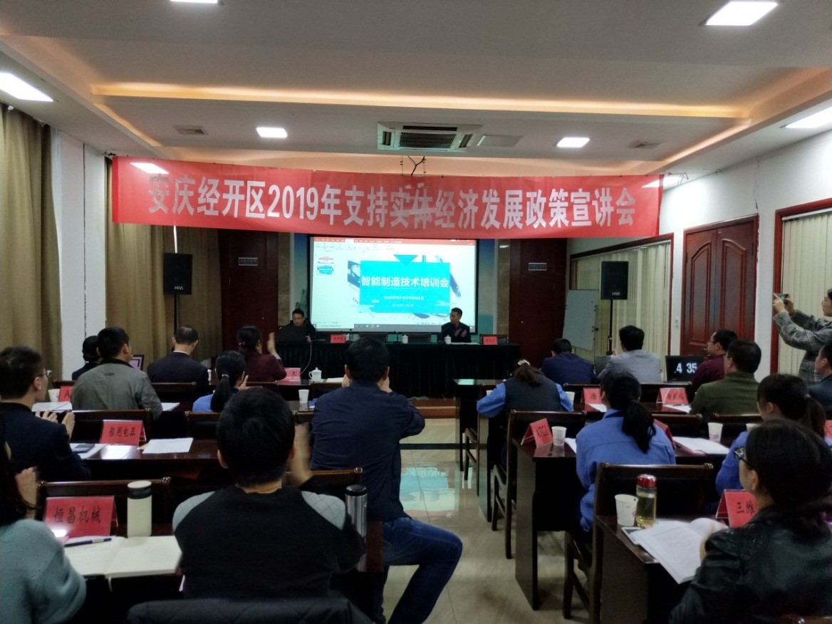 受安慶經(jīng)濟技術(shù)開發(fā)區(qū)產(chǎn)業(yè)與科技促進局邀請,11月8日,我校智能制造產(chǎn)業(yè)研究院參加安慶市2019年度支持實體經(jīng)濟發(fā)展系列政策宣講暨智能制造技術(shù)培訓(xùn)會。智能制造產(chǎn)業(yè)研究院副院長董甲東教授帶領(lǐng)相關(guān)專業(yè)博士教授團隊,對參會的經(jīng)開區(qū)企業(yè)做了智能制造技術(shù)培訓(xùn),開展了產(chǎn)學(xué)研項目推介和調(diào)研活動。會議由經(jīng)開區(qū)產(chǎn)業(yè)與科技促進局副局長陳仕方主持,園區(qū)70余家工業(yè)企業(yè)代表,經(jīng)開區(qū)經(jīng)發(fā)局、產(chǎn)促局以及媒體記者共80余人參加會議。