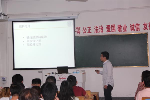 莊仲濱教授作了以“堿性膜燃料電池催化材料的研究”為主題的報(bào)告。報(bào)告中莊仲濱教授重點(diǎn)講述了堿性膜燃料電池、陽極催化材料和陰極催化材料相關(guān)的設(shè)計(jì)和性能研究作了系統(tǒng)的報(bào)告。莊教授的報(bào)告深入淺出,激發(fā)了我院師生對(duì)配位化學(xué)的濃厚興趣。