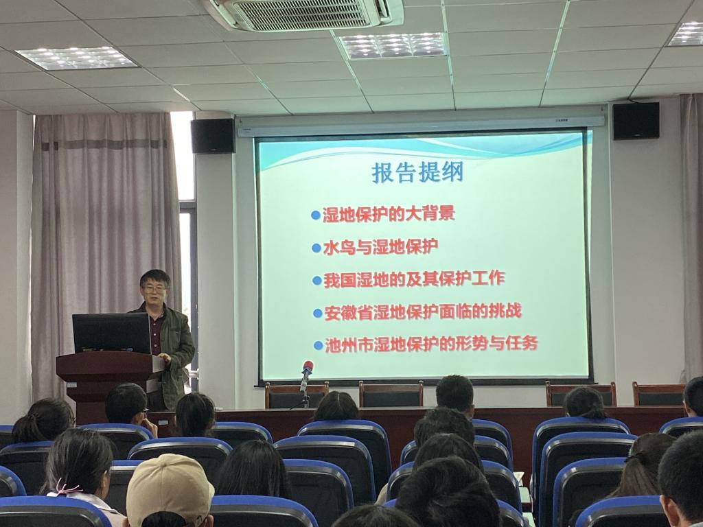 周立志教授就《安徽濕地保護(hù)修復(fù)模式的探索與實(shí)踐》做了詳細(xì)講解。具體介紹了什么是濕地,濕地的類型和生態(tài)過程,濕地的重要性和保護(hù),以及國際國內(nèi)濕地保護(hù)大背景。報(bào)告還就安徽濕地的現(xiàn)狀,深入探討了安徽濕地保護(hù)面臨的挑戰(zhàn)和保護(hù)任務(wù)的艱巨性。報(bào)告結(jié)束后, 該院與會(huì)師生與周教授就濕地保護(hù)問題進(jìn)行了探討和交流。