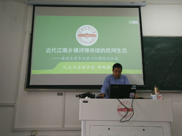 5月29日下午,人文與社會學院郝佩林博士在文淵樓103教室主講題為“近代江南鄉鎮評彈存續的民間生態”的學術講座。學院歷史學專業和文化產業管理專業學生聆聽了本場講座。