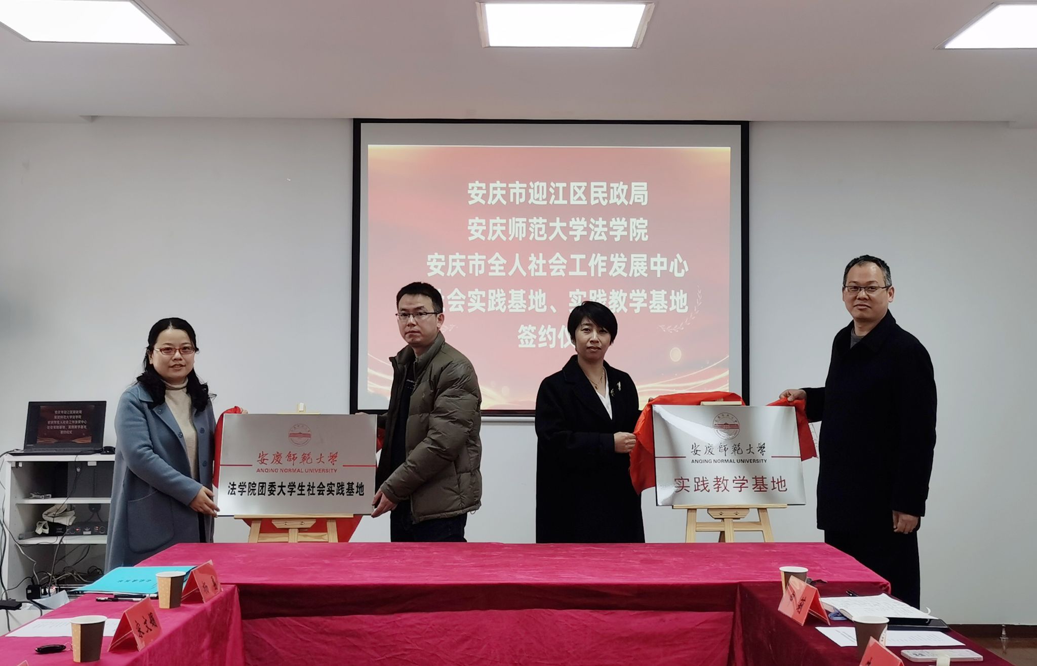 為更好地促進(jìn)廣大青年學(xué)子常態(tài)化、長(zhǎng)效化學(xué)習(xí)雷鋒精神,法學(xué)院與安慶市迎江區(qū)民政局、全人社會(huì)工作發(fā)展中心攜手合作。3月3日,安慶師范大學(xué)社會(huì)工作專業(yè)實(shí)踐教學(xué)基地、法學(xué)院團(tuán)委大學(xué)生社會(huì)實(shí)踐基地正式揭牌。