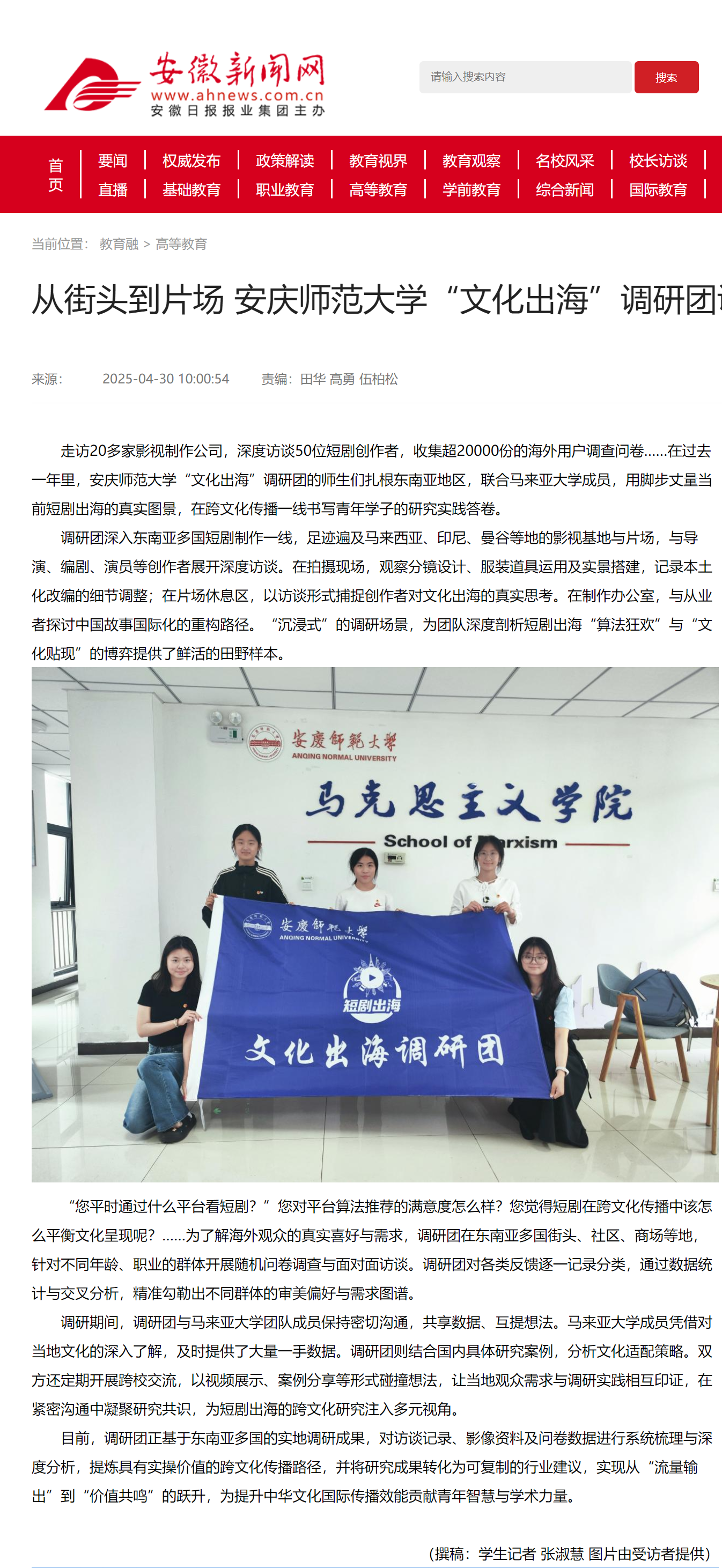 安徽新聞網(wǎng):從街頭到片場 安慶師范大學(xué)“文化出海”調(diào)研團(tuán)調(diào)研跨文化傳播